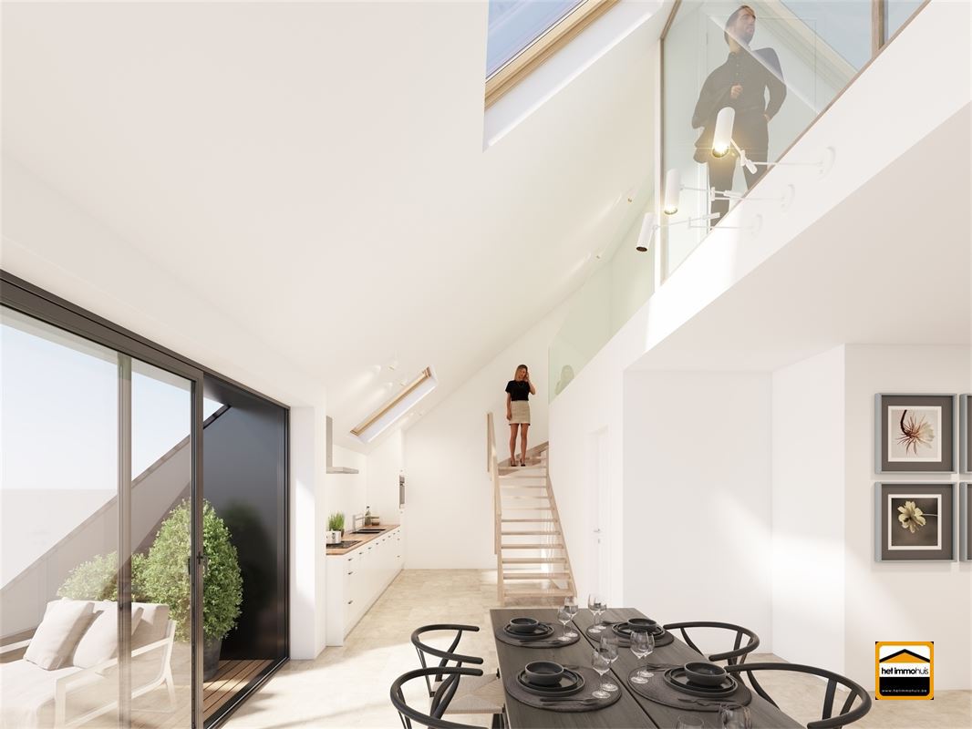 met open keuken, trap naar de verdieping, terras, vrij in te delen verdieping van 86,5 m². Goed voor